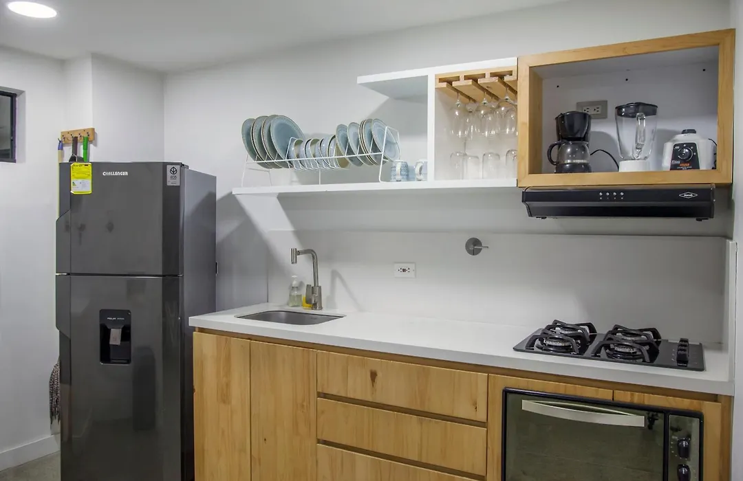 Deze accommodatie omvat alle nodige artikels, met inbegrip van een oven, een kookplaat en keukengerei, om zelf maaltijden in een keuken te koken. Het appartement is op 8 minuten wandelafstand van Pizzas Piccolo La Playa met een aanbod van Italiaanse keuken. Medellin Enrique Olaya Herrera ligt op afstand van 10 km van Edificio Helena Appartement en Catedral Metropolitana busstation is op ongeveer 5 minuten afstand. De aanwezigheid van een spa lounge zorgt ervoor dat gasten een aangenamer verblijf hebben.